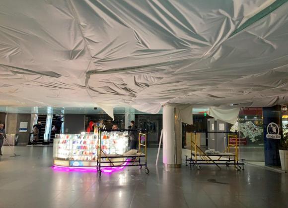 Большинство магазинов уже работает, среди них – LC Waikiki, Eldorado, Lush и Butlers. К открытию готовятся магазины Franttini, Watsons и Brabrabra lingerine – в витринах видно сотрудников. Не подают признаков открытия English home, American Touristen, Odjі и Carlo Pazolini.Спускаюсь на -1 этаж. Здесь последствия потопа больше. Потолок чем-то завешен, не то тканевым материалом, не то полиэтиленом. Персонал моет полы общих зон (между магазинами). Торговые точки работают практически все, за исключением "Алло max", Mi Xiaomi и Master Zoo. Супермаркет "Ашан" работает.