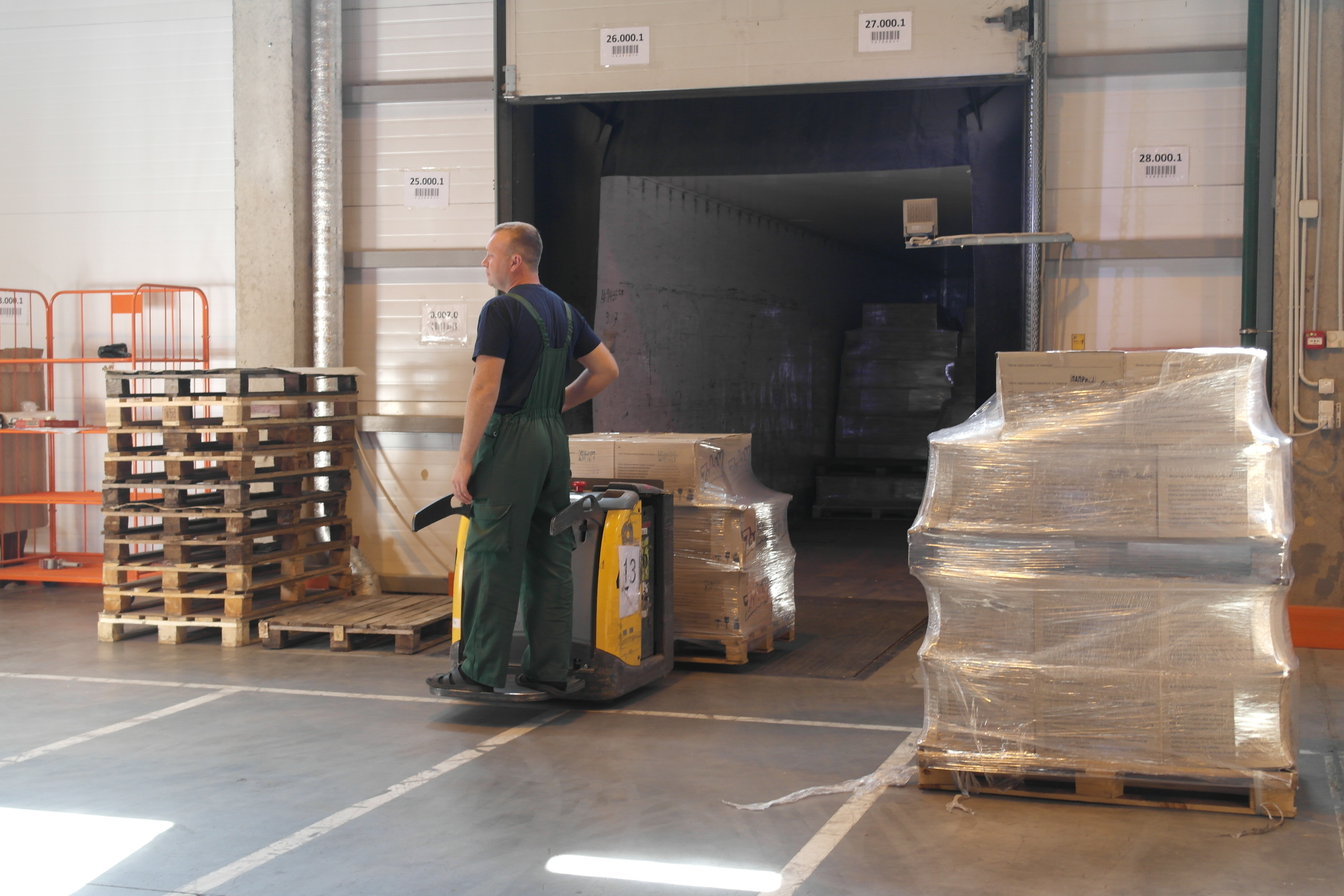 После прибытия машины разгрузка товара через ворота происходит с помощью специальной погрузочной техники — роклы.