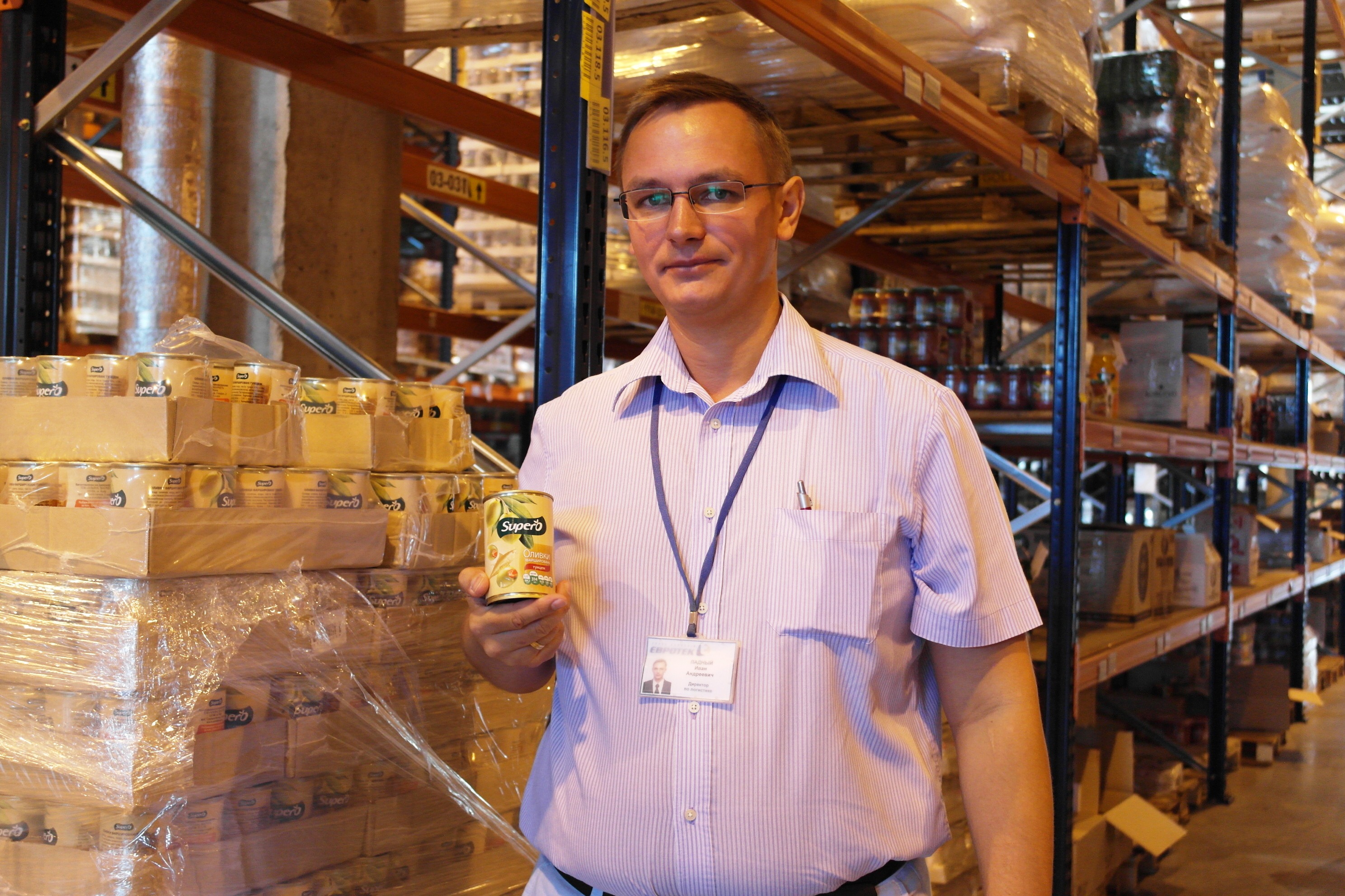 Иван Ладный демонстрирует одну из позиций собственной торговой марки компании — оливки ТМ Supero