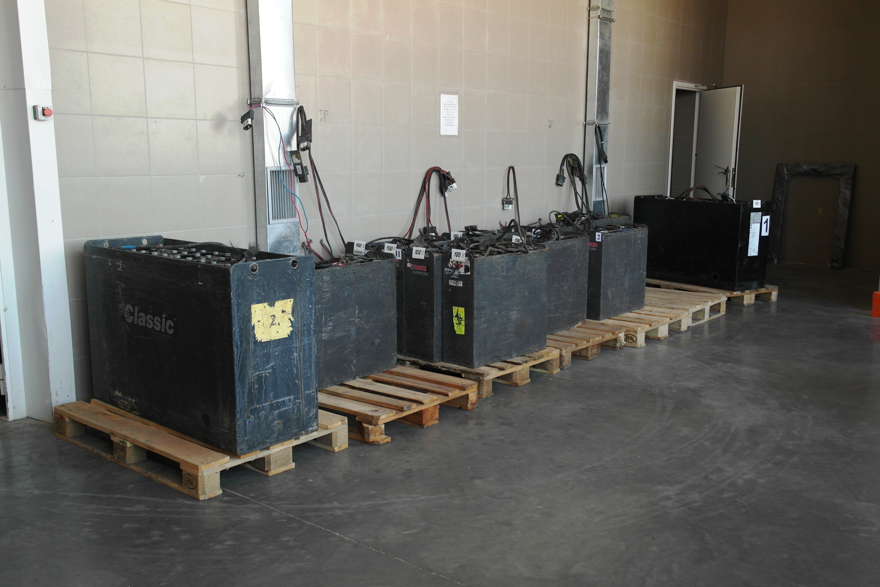 Все склады оборудованы аккумуляторными. В аккумуляторной происходит заряд батарей для обслуживающей склад техники.