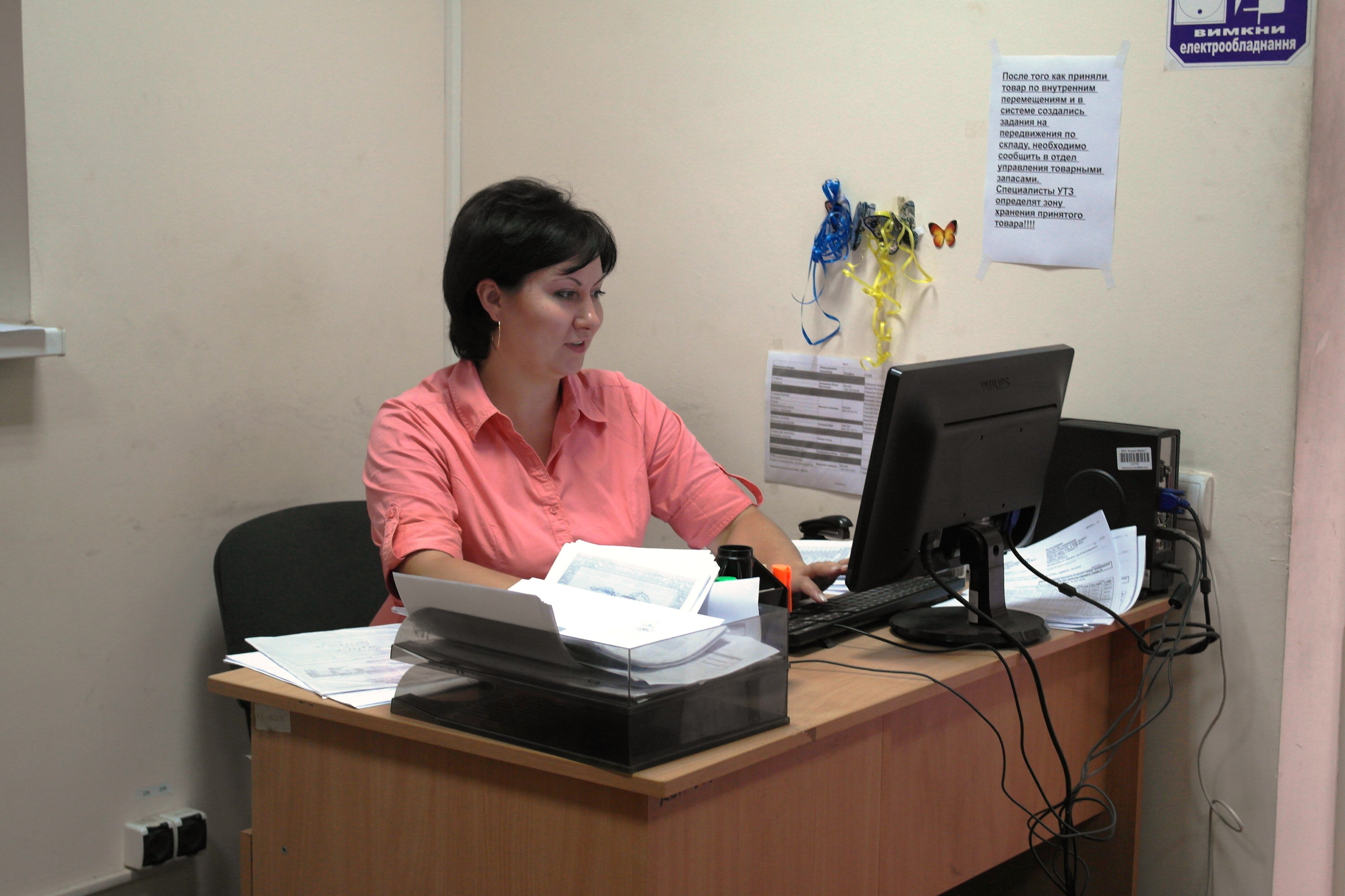 В этой части склада грузят товар на машины, печатают ТТН (это единственный документ в бумажном виде) в трех экземплярах. Он сопровождает груз в машине.