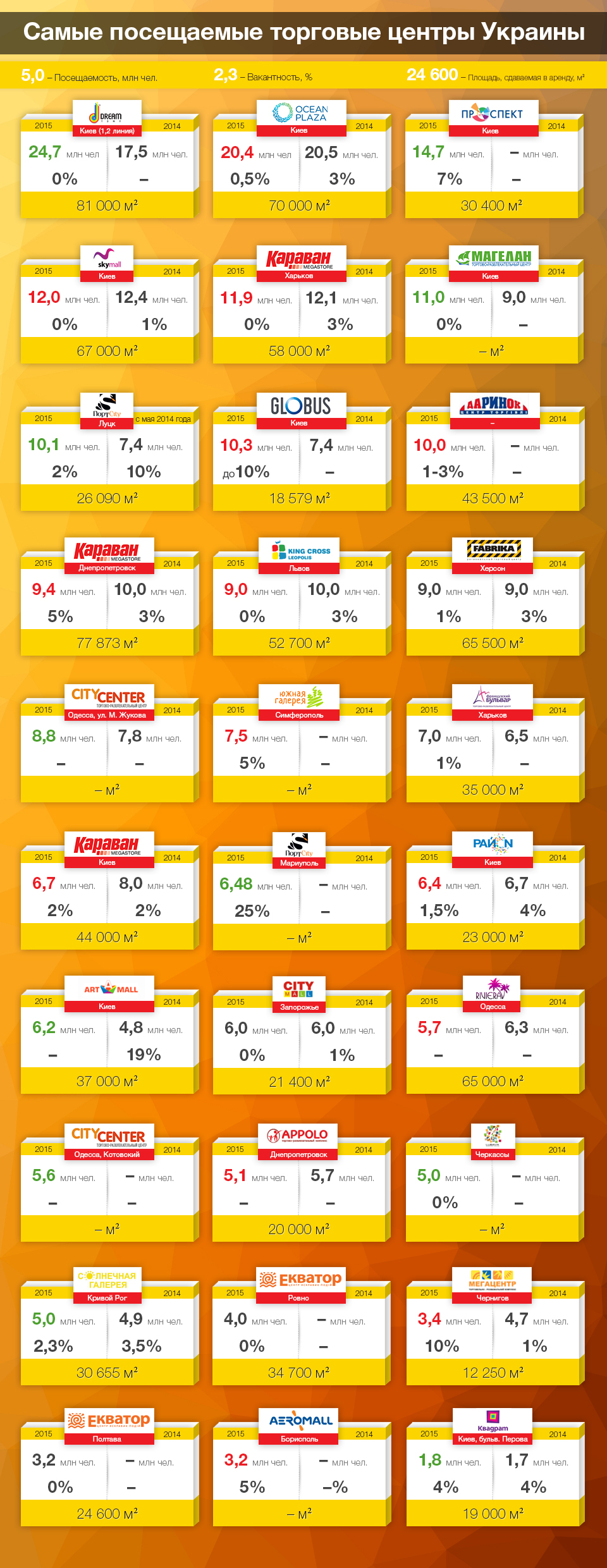 Рейтинг самых посещаемых торговых центров Украины в 2015 году