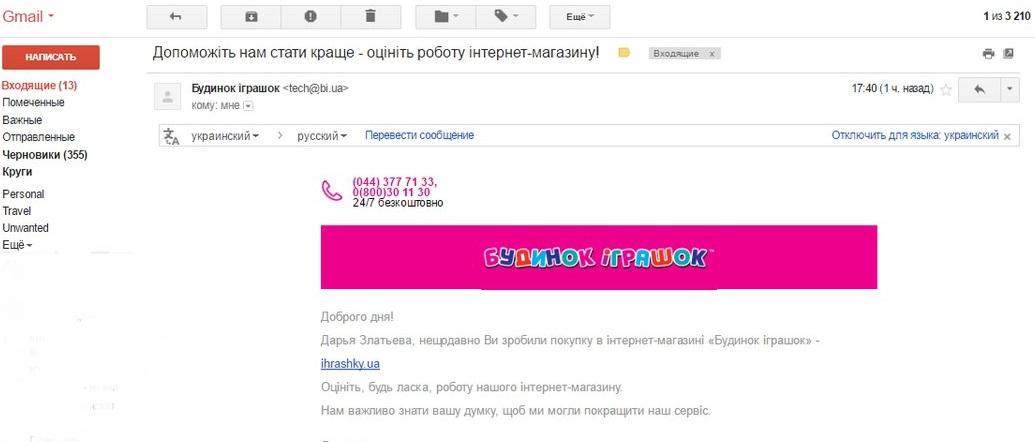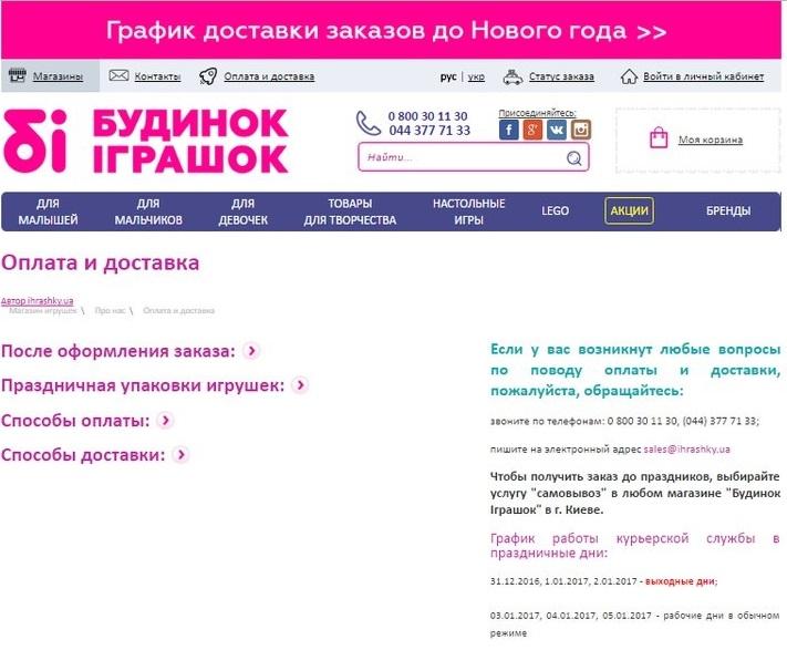 Чтобы получить заказ до праздников, покупателям предлагают забрать товар «самовывозом» в любом магазине «Будинок іграшок» в Киеве. По графику 31.12.2016, 01.01.2017, 02.01.2017 — выходные дни, а с 3-го в обычном режиме работники должны заняться моим заказом.
