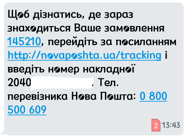 Через 18 минут после звонка я получил СМС с реквизитами доставки.