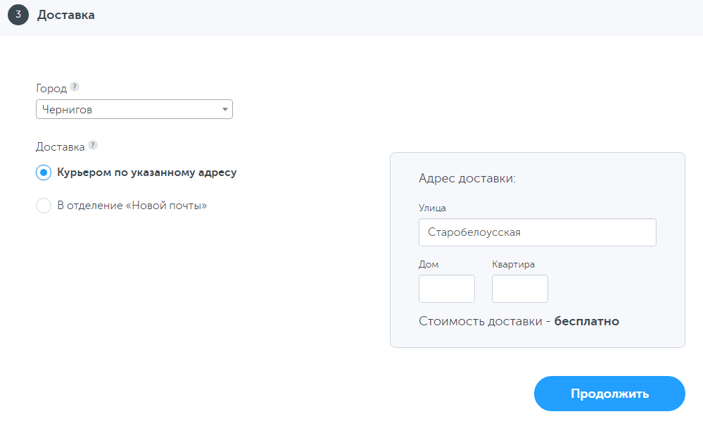 В разделе доставки меню простое и понятное.