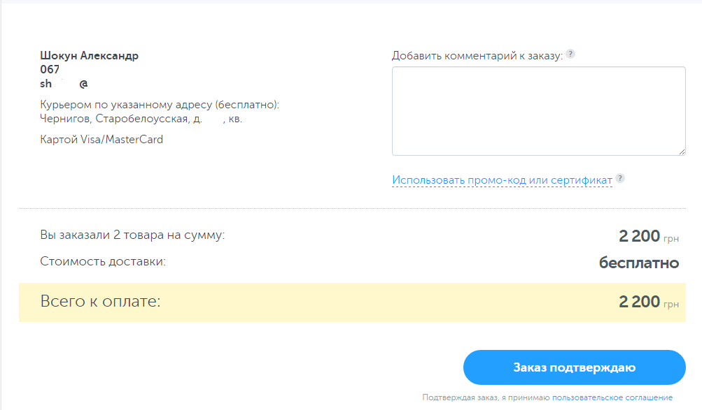 Оформляю заказ на сайте.