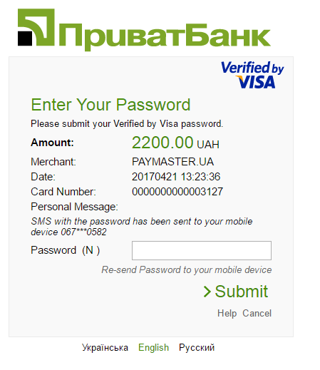 Онлайн-оплата настроена качественно: я сделал три шага, ввел код-пароль, требуемый «ПриватБанком» для аутентификации, после чего получил сообщение об оплате.