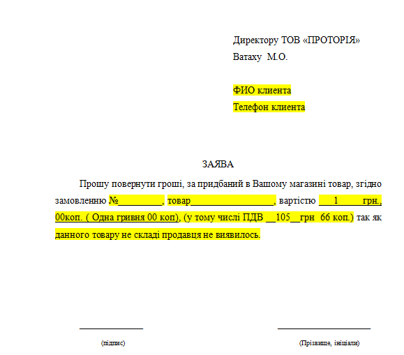В новом заявлении уже указано, что возврат осуществляется потому, что товар не подошел.