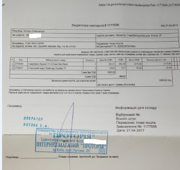 Я написал в компанию «Протория», что отправил товар, и указал номер накладной.