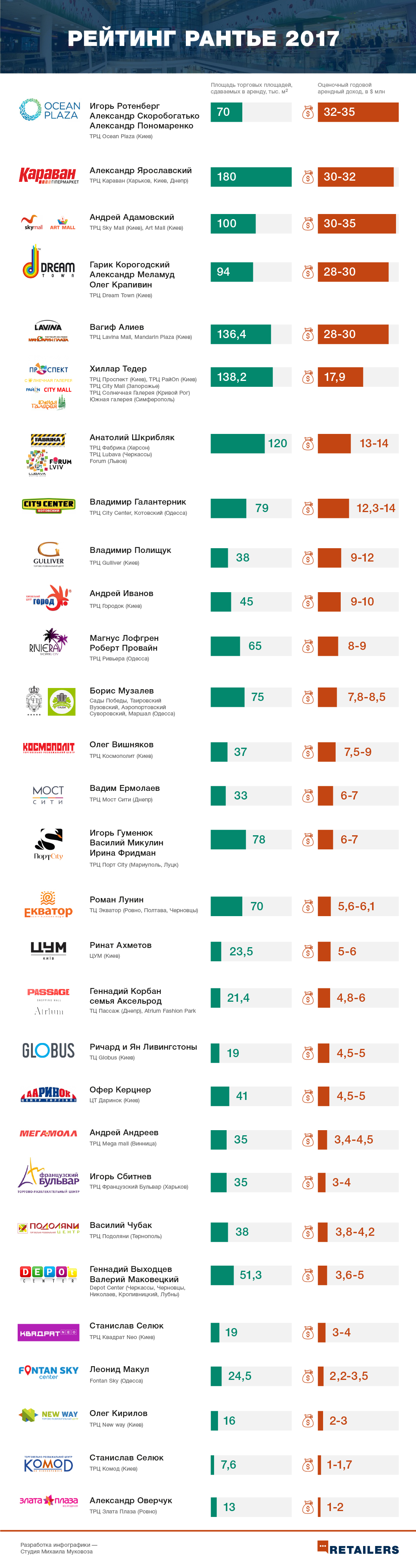Рейтинг рантье 2017 – инфографика об арендных доходах владельцев торговых центров