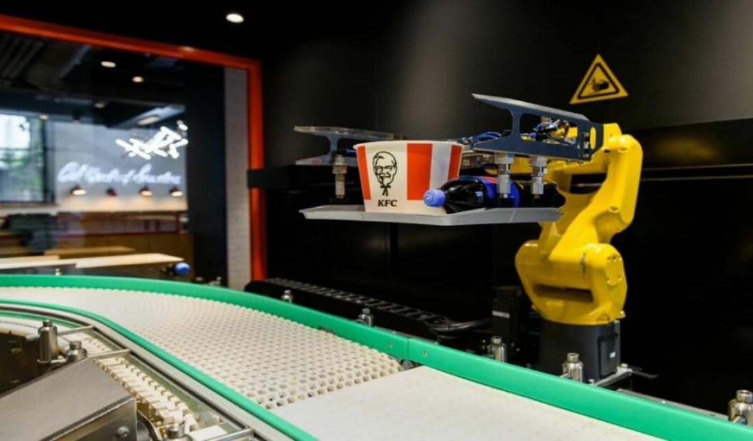 KFC откроет ресторан нового формата в РФ. В нём нет касс, заказы доставляет конвейер, а роборука подает их посетителю (фото)