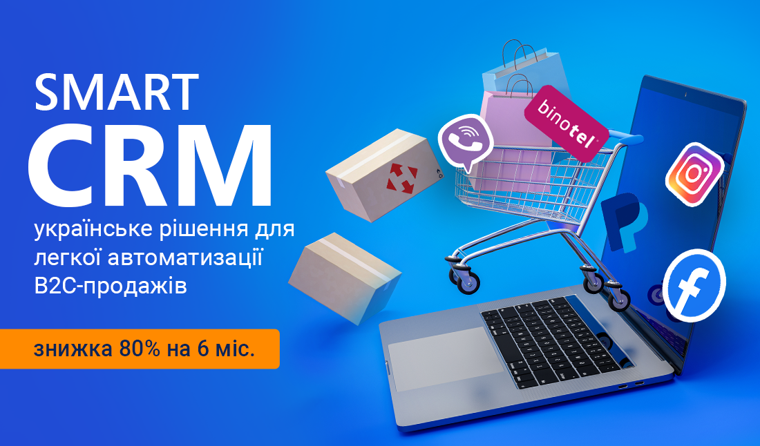 Тож якщо ви серед тих, хто знаходиться у пошуку такого рішення, радимо звернути увагу на нову українську CRM від компанії SMART business. До того ж зараз компанія пропонує спеціальні умови для українського бізнесу: 80% знижки на власні рішення в межах SMART CRM протягом 6 місяців за умови підписання договору до 30.10.22 або у разі передплати на рік.