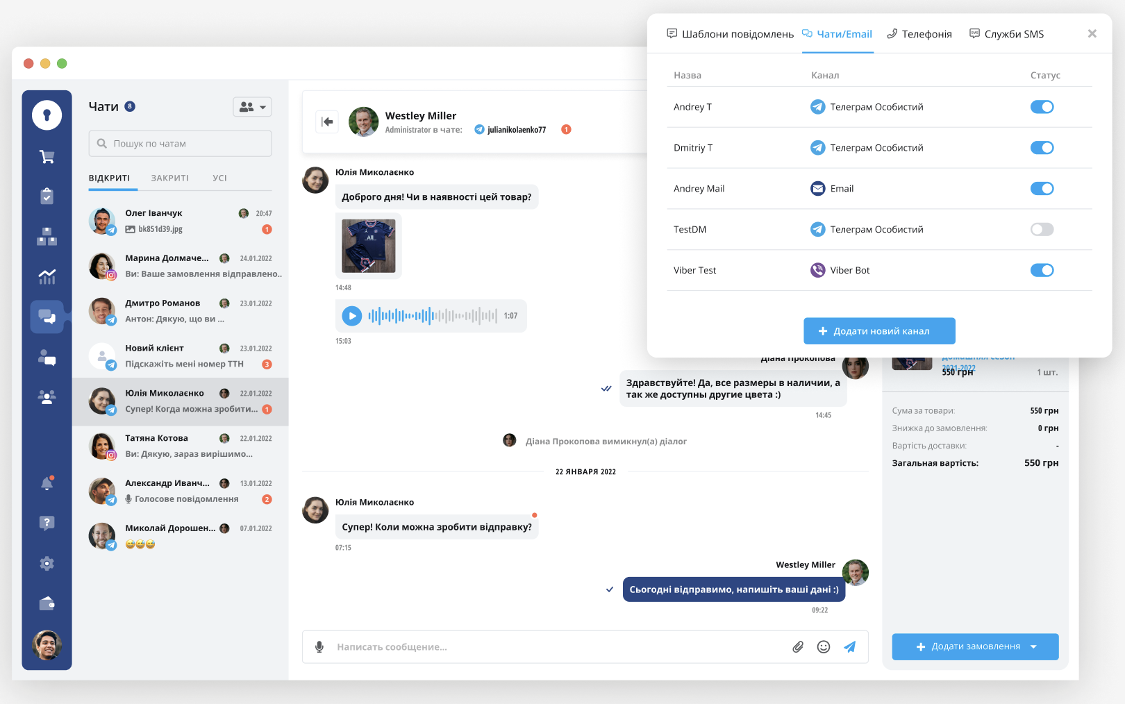 2. Легка робота з діалогами та створення заявки, замовлення прямо з чату