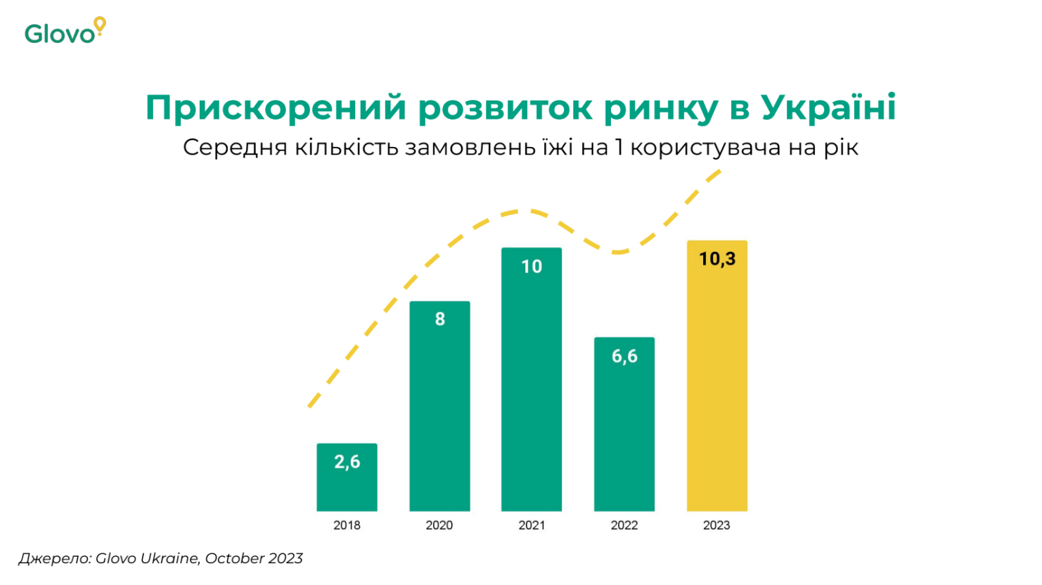 Станом на жовтень 2023-го українець у Glovo замовляє доставку близько 10,3 раза на рік.