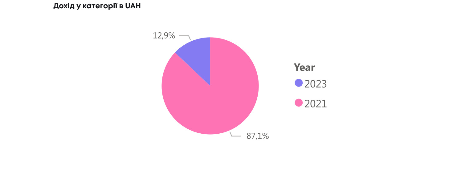 - Цікаво, що коефіцієнт конверсії у категорії у 2023 році зменшився, тоді як дохідна частина та трафік навпаки стрімко виросли. Відтак розуміємо, що частина користувачів заходить на сайти цієї категорії лише для моніторингу цін, а не для замовлення.