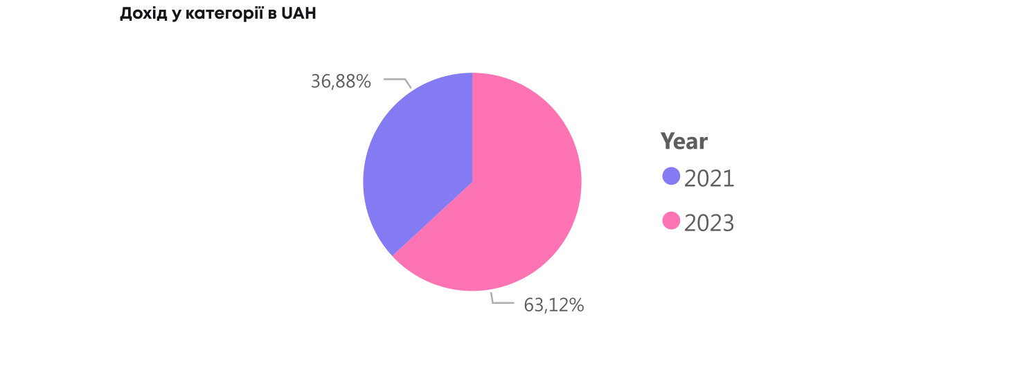 - За рівнем доходу у 2023-му категорія зросла в середньому на 65% у доларах. У гривні — на 85%. Але варто враховувати, що з 2022 року нішеві гравці почали дуже активно переходити в онлайн. І зростали поступово — з липня 2022.