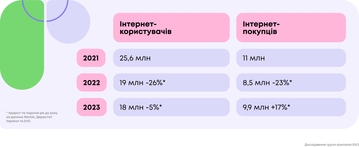 КІЛЬКІСТЬ ІНТЕРНЕТ-КОРИСТУВАЧІВ ТА ІНТЕРНЕТ-ПОКУПЦІВ В УКРАЇНІ У 2021-2023 РОКАХ