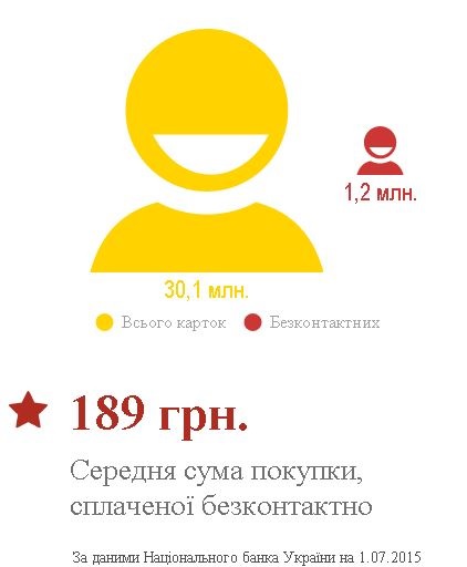 По данным UPC (Украинский процессинговый центр), средняя сумма покупки, оплаченной бесконтактным путем, составила в указанный период 189 грн и увеличилась на 12% с начала года. Чаще всего бесконтактными карточками украинцы рассчитывались на АЗС, в супермаркетах, ресторанах быстрого питания, за билеты в кино, в магазинах косметики.