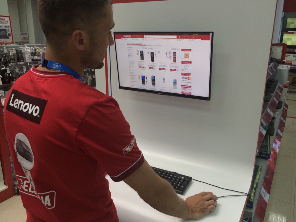 По факту электронная полка работает так же, как и онлайн-магазин «Эльдорадо», поэтому и заказ происходит так же: покупатель находит нужную позицию, оформляет заказ с помощью той же электронной полки и, если позиция есть в магазине или на том складе, который прилегает к торговой точке, — может сразу его забрать.