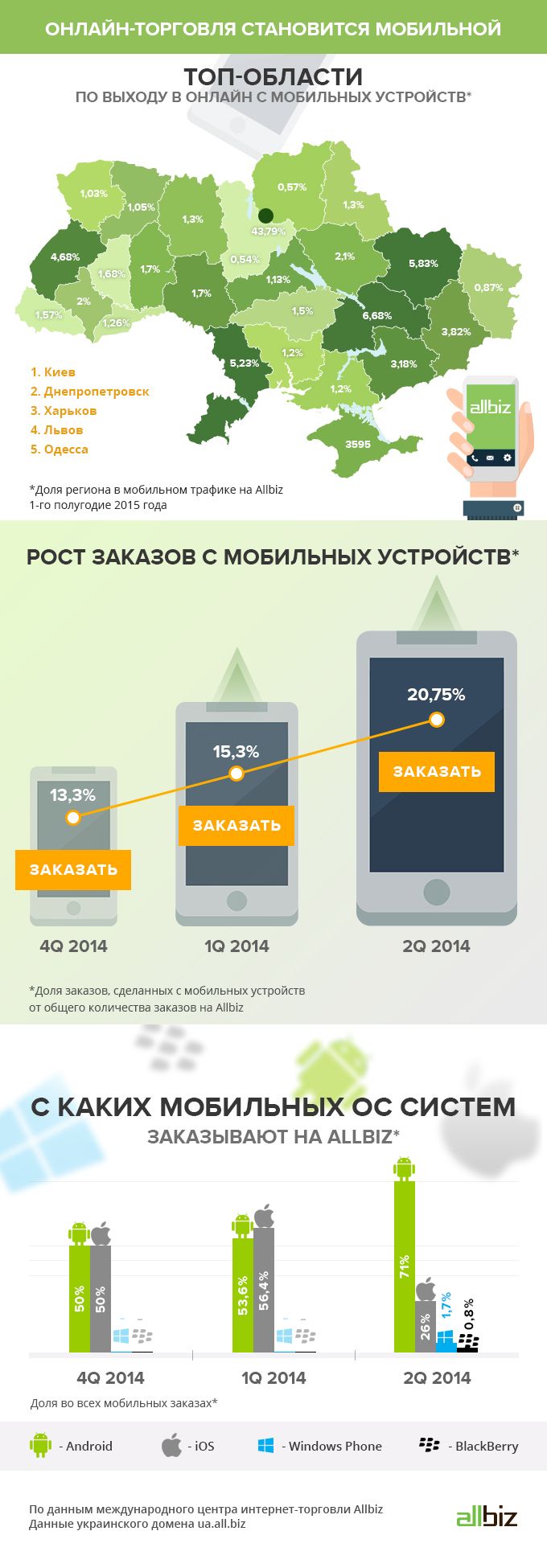 Мобильная коммерция – один из самых развивающихся трендов последнего года и в мире и в Украине. Во втором квартале 2015 года на долю заказов в All.biz, сделанных с мобильных устройств, пришлось почти 21%