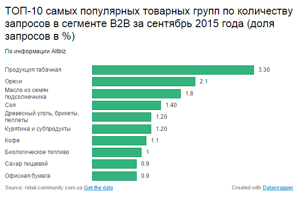 Международный центр интернет-торговли Allbiz, помогающий украинским компаниям развивать бизнес на локальном и международных рынках, подготовил рейтинг самых популярных у украинских предпринимателей товаров сентября