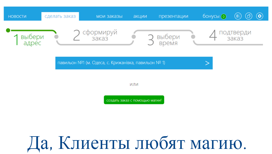 На портале система такая же простая, как и в интернет-магазине. Клиент выбирает нужные позиции, ему выдается сразу сумма заказа, вес и количество бонусных баллов, которое он получит. Клиента нужно замотивировать. Клиент выбрал позиции, проверил остатки, сформировал заказ, подтвердил.