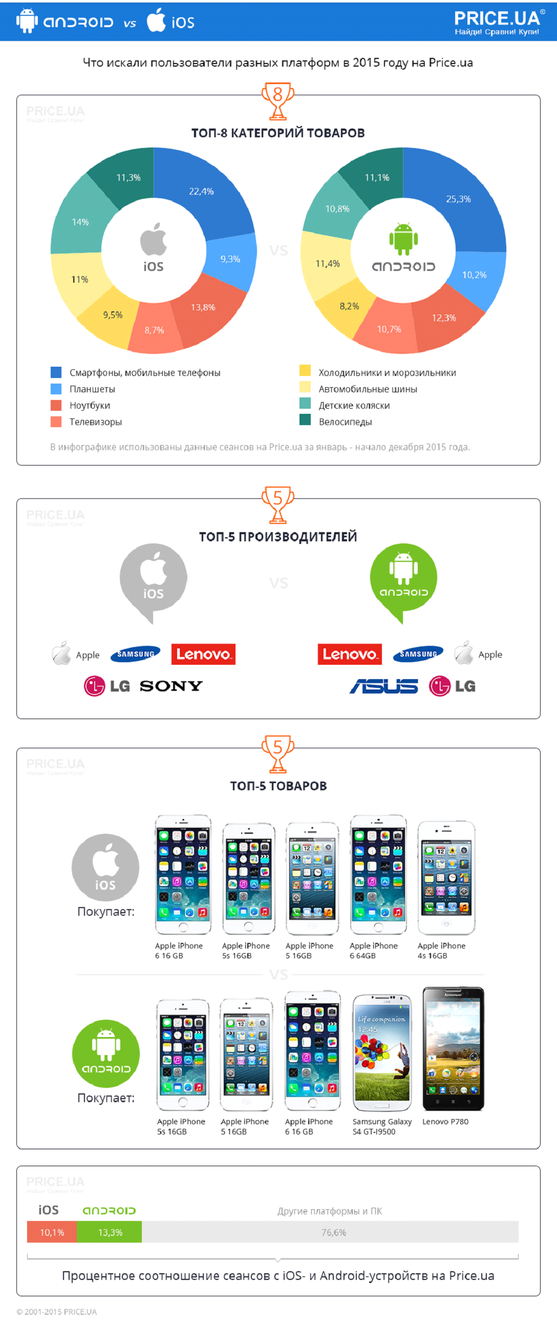 Price.ua проанализировал статистику и поделился исследованием о том, что искали пользователи iOS и Android в 2015 году. Кто активнее покупает: Android или iOS.