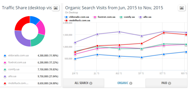 В уходящем году игроки украинского рынка e-commerce сократили затраты на наружную рекламу, в некоторых случаях до 40%, зато активно работали с SEO и контекстом. К таким выводам пришли авторы исследования «Как развивался e-commerce в 2015 году?», составленного Promo.ua. Динамику изменений анализировали по Similar Web для топ-сайтов, а именно: rozetka.com.ua, allo.ua, comfy.ua, f.ua, foxtrot.com.ua, mobilluck.com.ua и eldorado.com.ua