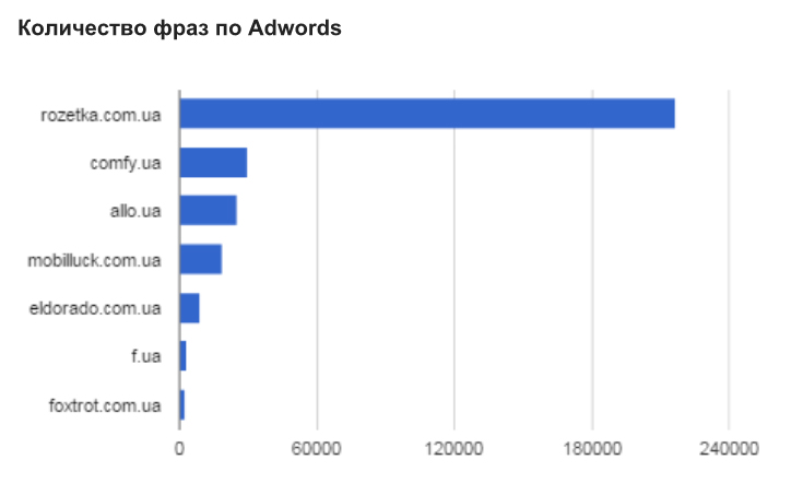 Comfy компенсирует проседание по органике максимальными (после «Розетки») бюджетами на платные источники. Fotos и «Фокстрот» не участвуют в дорогих аукционах Adwords, ориентируя кампании не на охват аудитории, а на рентабельность источника. Поэтому их реклама показывается по меньшему числу фраз.