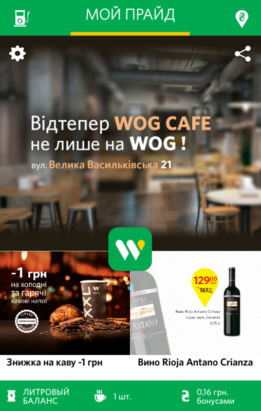 - получить индивидуальные купоны на скидку на товары и продукцию WOG CAFE;
