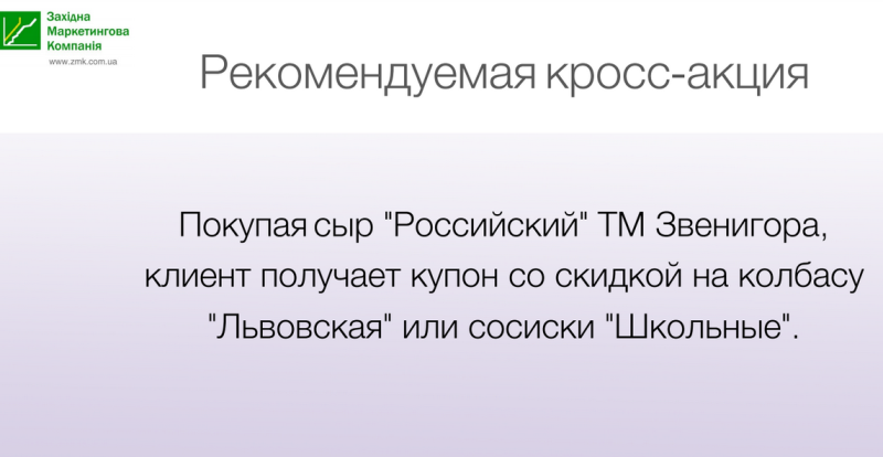 В корзинах, где присутствует «Сыр российский фасованный твердый», чек значительно больше — 100–200 грн. Как минимум каждый двадцатый клиент покупает его.