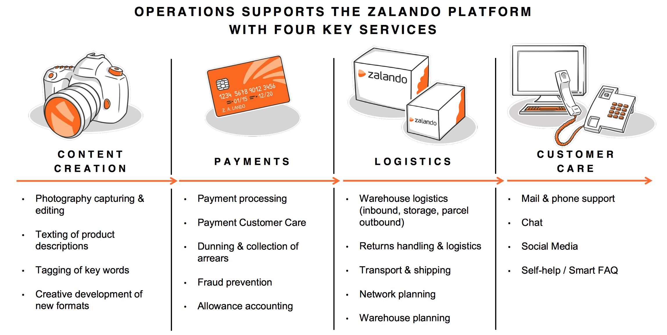 Представители Zalando анонсировали новый во время мероприятия Capital Markets Day. В презентации сказано, что ритейлер намерен предложить партнерам пакет базовых услуг. Компания будет осуществлять создание контента (фотосъемка, описание товаров и т. д.), проводить платежи, отвечать за хранению, доставку и возврат товаров, а также за клиентский сервис.