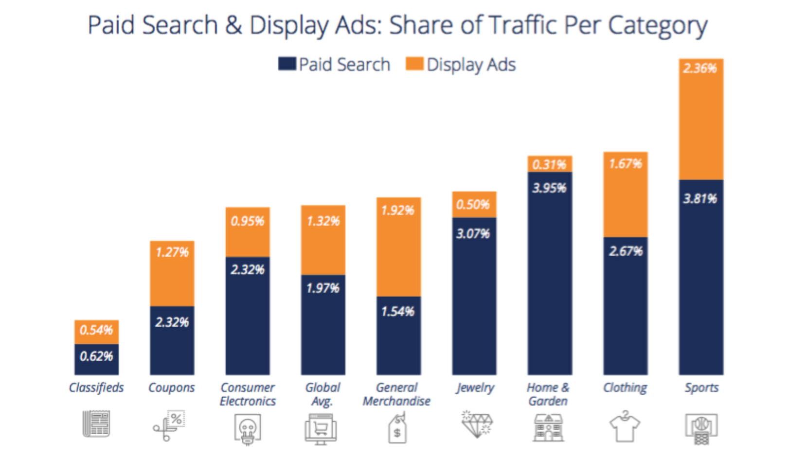 Отчет фокусируется на множестве метрик, которые имеют отношение к платному поиску, при этом специалисты не брали в учет мобильный трафик. По данным исследования, в большинстве товарных категорий поисковая реклама привлекает декстопный трафик эффективнее, чем медийная. Исключение составляют товары народного потребления.