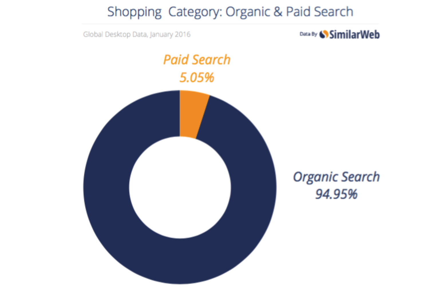 Согласно данным отчета, в рамках самого поиска доля контекстной рекламы составляет всего 5% трафика, тогда как на органический поиск приходится около 95%.