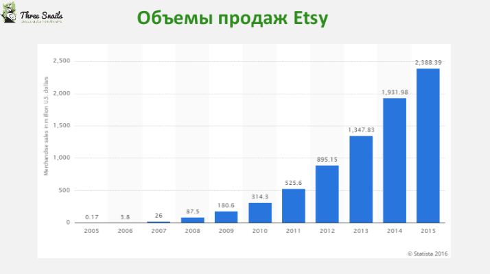 Количество покупателей на Etsy выросло с 19 800 в 2014-м до 24 046 в 2015 году, продавцов — с 1 353 до 1 563 соответственно.