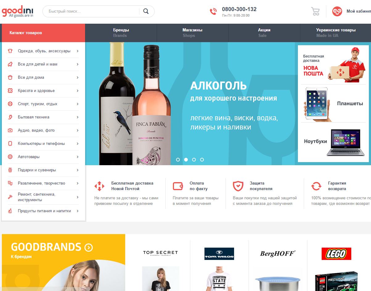 Очередной маркетплейс от группы компаний EVO под названием Goodini уже работает в тестовом режиме. Ранее в компании сообщали, что официальный запуск проекта назначен на сентябрь. На площадке, как и на Prom.ua и Bigl.ua, представлены товары напрямую от поставщиков. Среди них есть товары таких ритейлеров, как WineTime, Moyo, Top Secret
