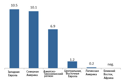 В США, Японии и Австралии будет наблюдаться наибольший рост количества касс самообслуживания. США является одним из старых рынков кассовых систем самообслуживания, а это говорит о том, что на рынке будет наблюдаться тенденция к обновлению старых моделей на решения нового поколения. Данная ситуация в сочетании с ростом числа новых установок касс самообслуживания уже привела к увеличению в 2015 году поставок оборудования на 26%.