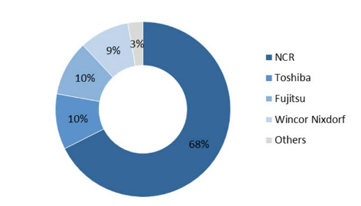 Компании Toshiba, Fujitsu и Wincor Nixdorf вместе составляют почти всю оставшуюся долю рынка. Доля Toshiba выросла на 2%, причем более половины всей продукции поставляется в Японию. Продукция Fujitsu активно продается в Северной Америке, где в 2015 году было реализовано 3/4 всего кассового оборудования.