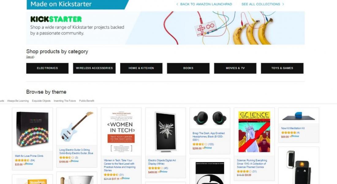Новый раздел, посвященный Kickstarter, — это на самом деле расширение проекта Amazon Launchpad, открытого год назад. В момент запуска на этой платформе, предлагающие молодым технологическим компаниям маркетинг и реализацию товаров, было более 200 наименований. Для их отбора Amazon работала с более чем 25 венчурными компаниями, акселераторами и краудфандинговыми платформами, среди которых Andreessen Horowitz, Y Combinator, Indiegogo и другие. Сейчас количество партнеров онлайн-ритейлера превышает сотню.