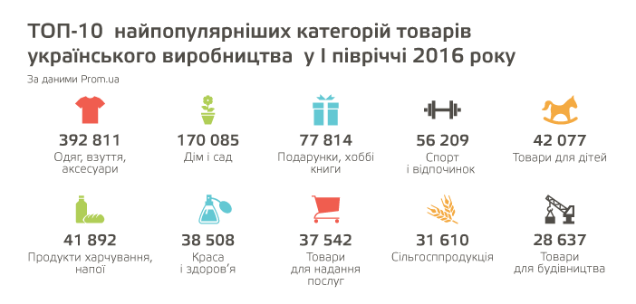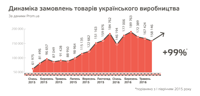 В первом полугодии 2016 года интернет-покупатели Украины купили на маркетплейсе Prom.ua почти в два раза больше товаров отечественного производства, чем годом ранее