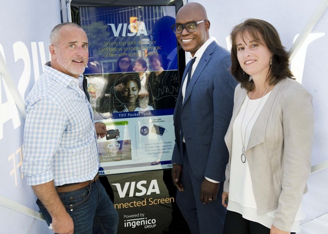 Другой разработкой платежной системы Visa и компании Ingenico стал подключенный экран. Это первый в своем роде в Северной Америке экран действующий, как цифровой рекламный щит, позволяющий гостям фестиваля жертвовать $2 или $5 благотворительному фонду TIFF Pocket Fund простым прикосновением банковской карты Visa PayWave или мобильного телефона.