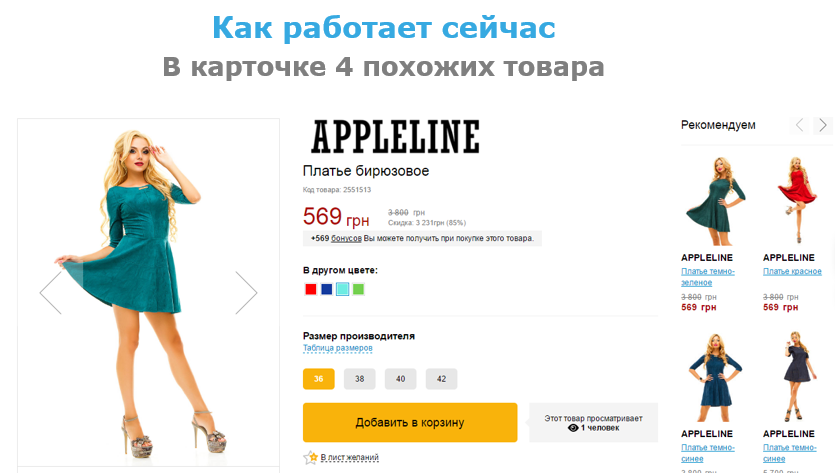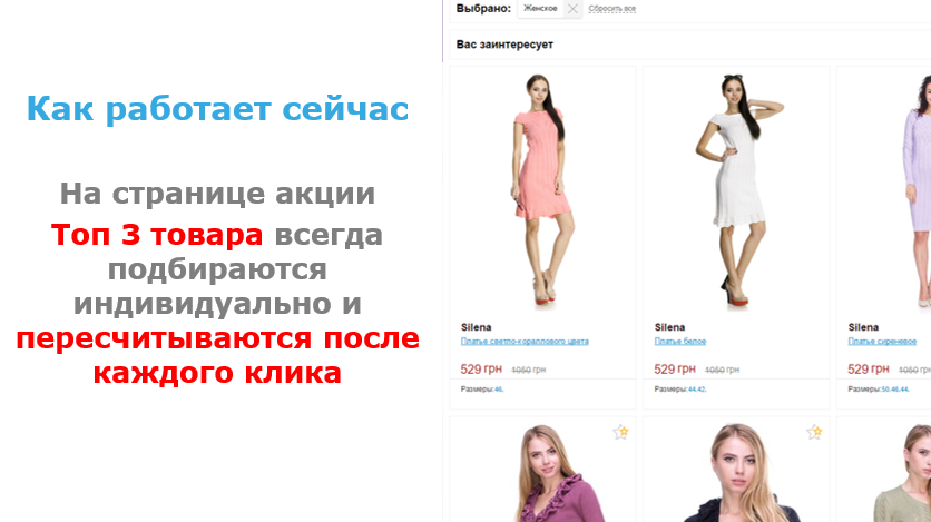 Пример: первая клиентка зашла на Le Boutique, посмотрела розовую юбку и розовую кофту, потом заходит вторая и смотрит только розовую юбку, а ей предлагается розовая кофта. «Когда таких клиенток много, мы точно знаем, что им порекомендовать. Этот алгоритм придуман еще лет 15 назад, на Amazon такие блоки называются customers, who viewed this product also viewed».