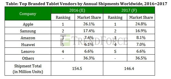 В сегменте планшетов в 2016-м специалисты ожидают падение на уровне 8,3%: продажи таких устройств составят приблизительно 154,5 млн штук. В 2017 году рынок продолжит сокращение — его объем просядет до 146,4 млн единиц, или на 5,3% в сравнении с 2016-м. Крупнейшими поставщиками, как и прежде, останутся такие компании, как Apple, Samsung и Amazon.