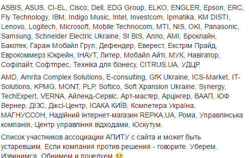 И привел список компаний, которые входят в АПИТУ.