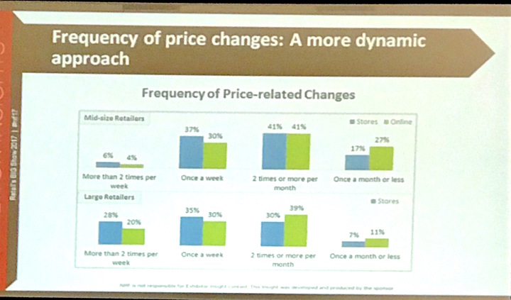 Крупные ритейлеры меняют цены чаще, чем средние или малые предприятия торговли. Они также более активны в изменении цен в онлайне.