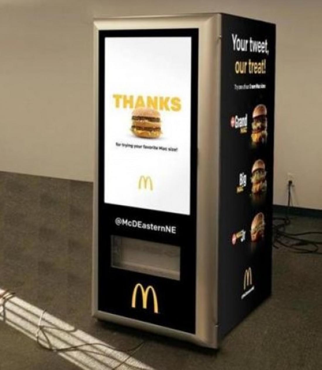 Американский фастфуд гигант McDonald's установил в Бостоне уникальный автомат, который будет выдавать бесплатные БигМаки за сообщения в Twitter. Об этом пишет Kiosksoft