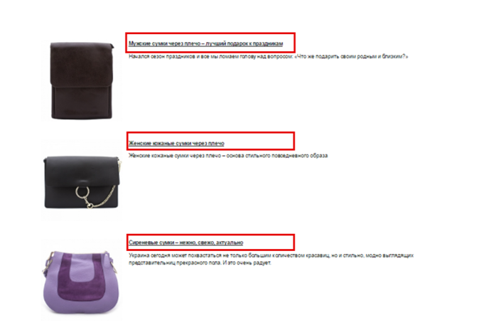 Блог необходим не только для освещения новостей компании, но и для привлечения дополнительного трафика и, как следствие, потенциальной аудитории. Статьи должны включать в себя основные ключевые запросы, которые задаются вашими потенциальными пользователями: это могут быть как брендовые запросы, так и запросы по схожим тематикам, которые поднимаются при упоминании о вашем магазине. Например, помимо высокочастотного запроса «купить сумку» можно использовать также более низкочастотный запрос, например, «купить красную замшевую сумку». При использовании такого рода запросов: