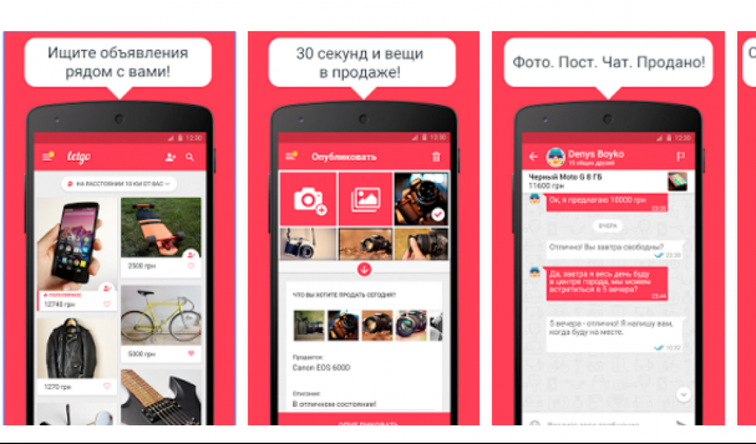 — Продавать и покупать с letgo легко и быстро. Публикация объявления занимает 30 секунд, и это не преувеличение. Благодаря быстрому постингу фотографий продаваемого товара, которые тут же делаешь в новом объявлении приложения. Мгновенный чат действительно мгновенный, и это то, что сейчас особенно ценно в процессе общения. Вы видите предложения вблизи вас, на расстоянии 1 км. То есть сама сделка происходит тоже достаточно быстро: вам не нужно ехать на другой конец города или ждать доставку.