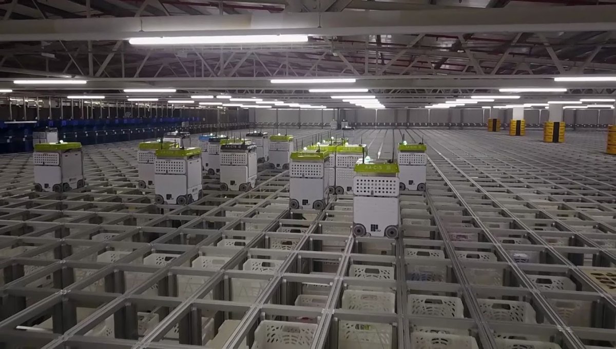 У Ocado есть три склада, которые занимаются доставкой в Великобритании. Они используют роботов, автоматические конвейерные ленты, шаттлы и краны, чтобы найти на полках нужные продукты питания и быстро подвезти их к ожидающим у входа грузовикам, которые затем доставят еду клиентам.
