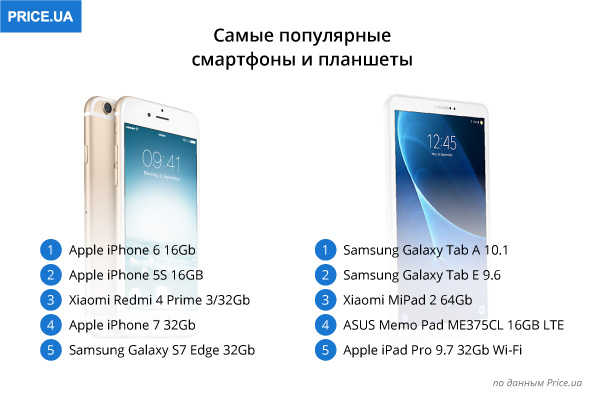 В сегменте смартфонов и ноутбуков, как обычно, наибольший интерес у покупателей вызывает техника Apple. В пятерке популярных устройств оказались Apple iPhone 5S и «шестерка» на 16 ГБ, а также iPhone 7 с 32 ГБ памяти.